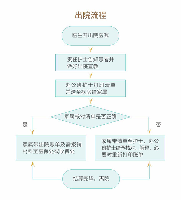 ◆護(hù)士給您打印出院總賬單后送到病房給您,請您認(rèn)真核對賬單無誤后,將賬單及需要報(bào)銷的資料,到我院1樓醫(yī)保處(有醫(yī)保報(bào)銷的)或收費(fèi)處,結(jié)算結(jié)束后離院。